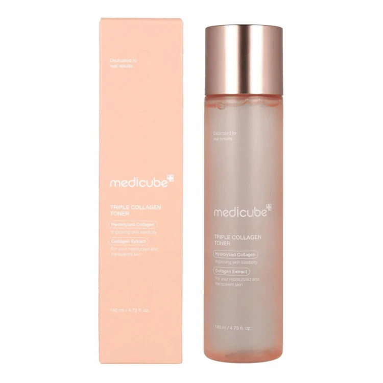 تونر جوانساز کلاژن مدی کیوب Medicube Triple Collagen Toner یک تونر مرطوب کننده است که برای بهبود الاستیسیته پوست و تأمین رطوبت عمیق طراحی شده است. این تونر حاوی سه نوع کلاژن است: کلاژن هیدرولیز شده، آتلو کلاژن و کلاژن محلول که هر کدام به لایه های مختلف پوست نفوذ می کنند و به تقویت و سفتی پوست کمک می کنند.
