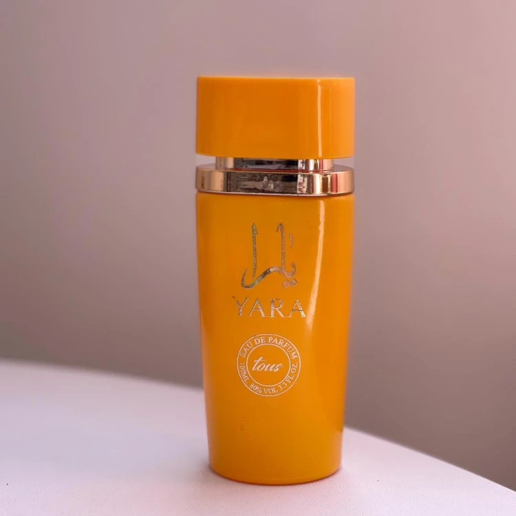 ادکلن زنانه لطافه مدل یارا توس Yara Tous از برند معروف لطافه دارای رایحه ی گرم و شیرین است که در سال 2023 می عرضه شده است و در گروه بویایی گلی و میوه ای دسته بندی می شود که بدلیل طبع گرمی که دارد مناسب استفاده در فصول سرد سال است و برای کسانی که ادکلن های میوه ای می پسندند گزینه ی بسیار مناسبی است. عطر یارا زرد عطری با رایحه معتدل و شیرینی کنترل شده است و بویی ملیح دارد که اصلا رایحه آزار دهنده ای ندارد زیرا تمام نت های بکار رفته در آن در تعادل هستند . پس از اسپری این ادکلن به سرعت از رایحه خوش آن سرمست شوید. نت انبه ابدار رایحه ای ملایم و میوه ای را ایجاد می کند که شیرین و دلچسب به مشام می رسد. رایحه ای که حس شادی و سبکبالی را در وجودتان القا خواهد کرد. در ادامه نت میانی ، ترکیب گل یاسمن با شکوفه پرتقال رایحه ای گل دار، شیرین و با ته مایه ای تلخ خواهند بود. رایحه ای متضاد و جالب که در عین ظرافت، قدرتمند و زیباست و تجلی گر قدرت های زن مدرن و امروزی است. در انتها مشک ، عطر را به رایحه ای ملایم، نرم و گرم تبدیل می کند که به لطف وانیل شیرین، عطر بسیار خطی اما زنانه و لطیف جلوه خواهد کرد.